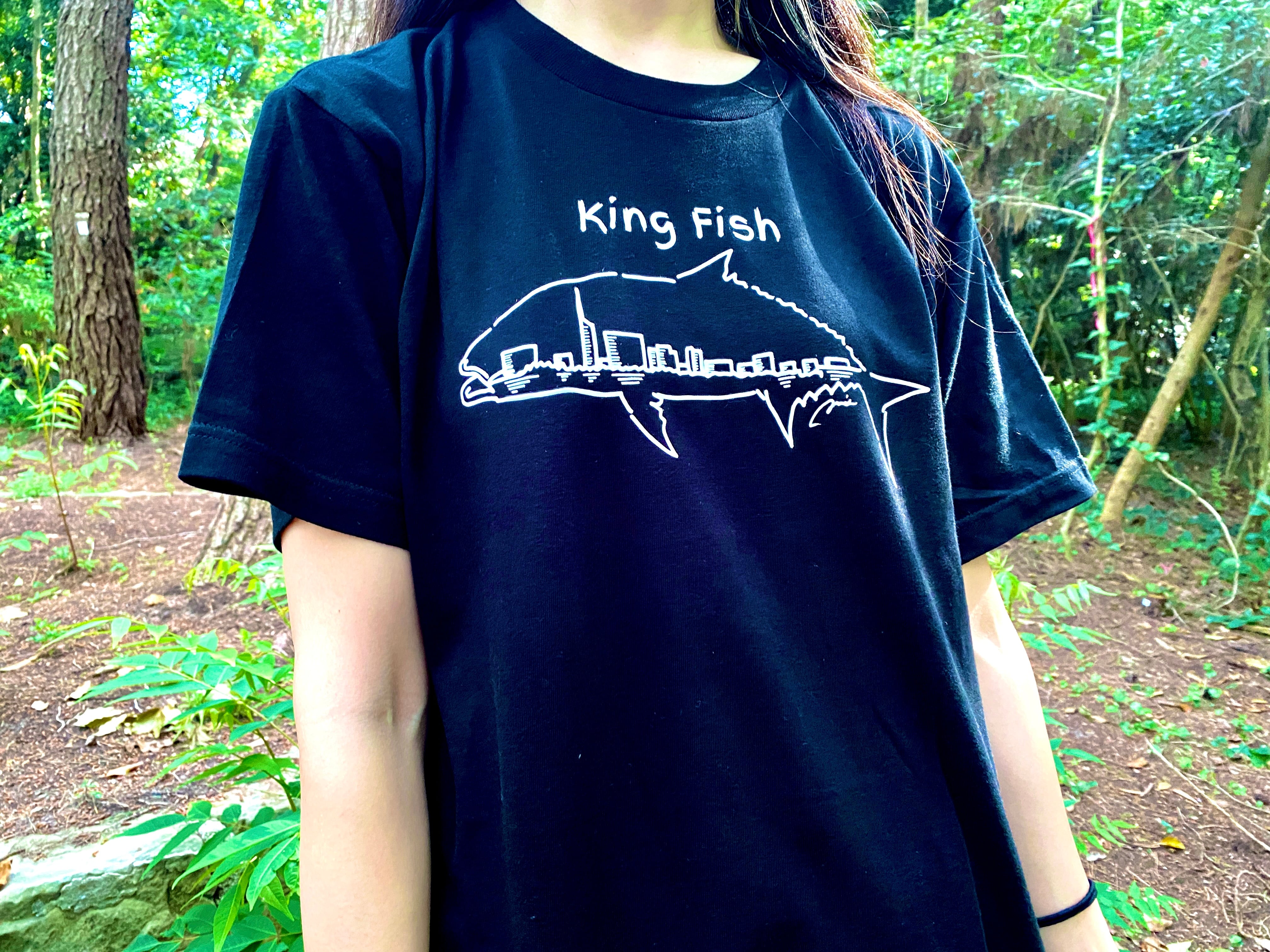 博多湾から臨める福岡の街並みとヒラマサ(king fish)をマッチングさせたデザイン